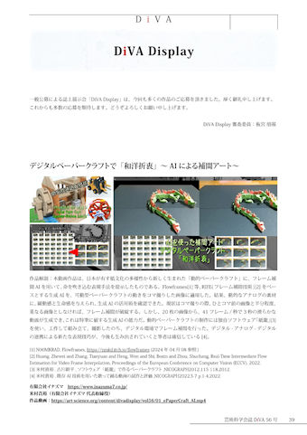 「誌面掲載情報」 芸術科学会、論文誌「DiVA」56号39頁に弊社代表が携わった創作物(文章執筆)の「デジタルペーパークラフトで「和洋折衷」~AI による補間アート~」に関する記事が審査のち掲載されました。
