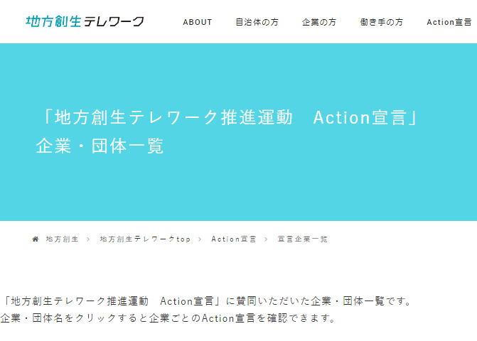 「掲載」『地方創生テレワーク推進運動Action宣言』